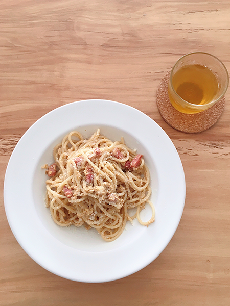 私が作るカルボナーラは炭焼き風です。