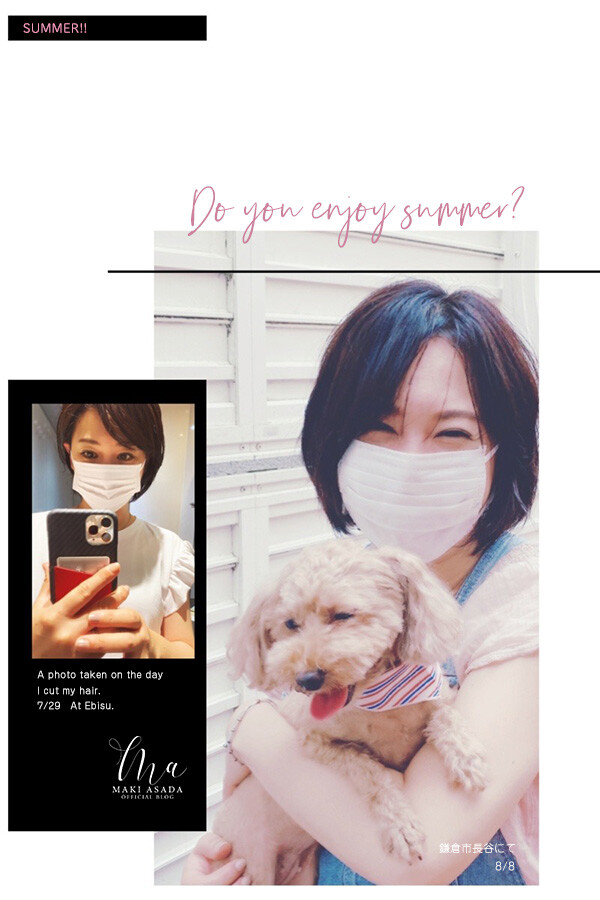 夏やね、また髪を切った真季。